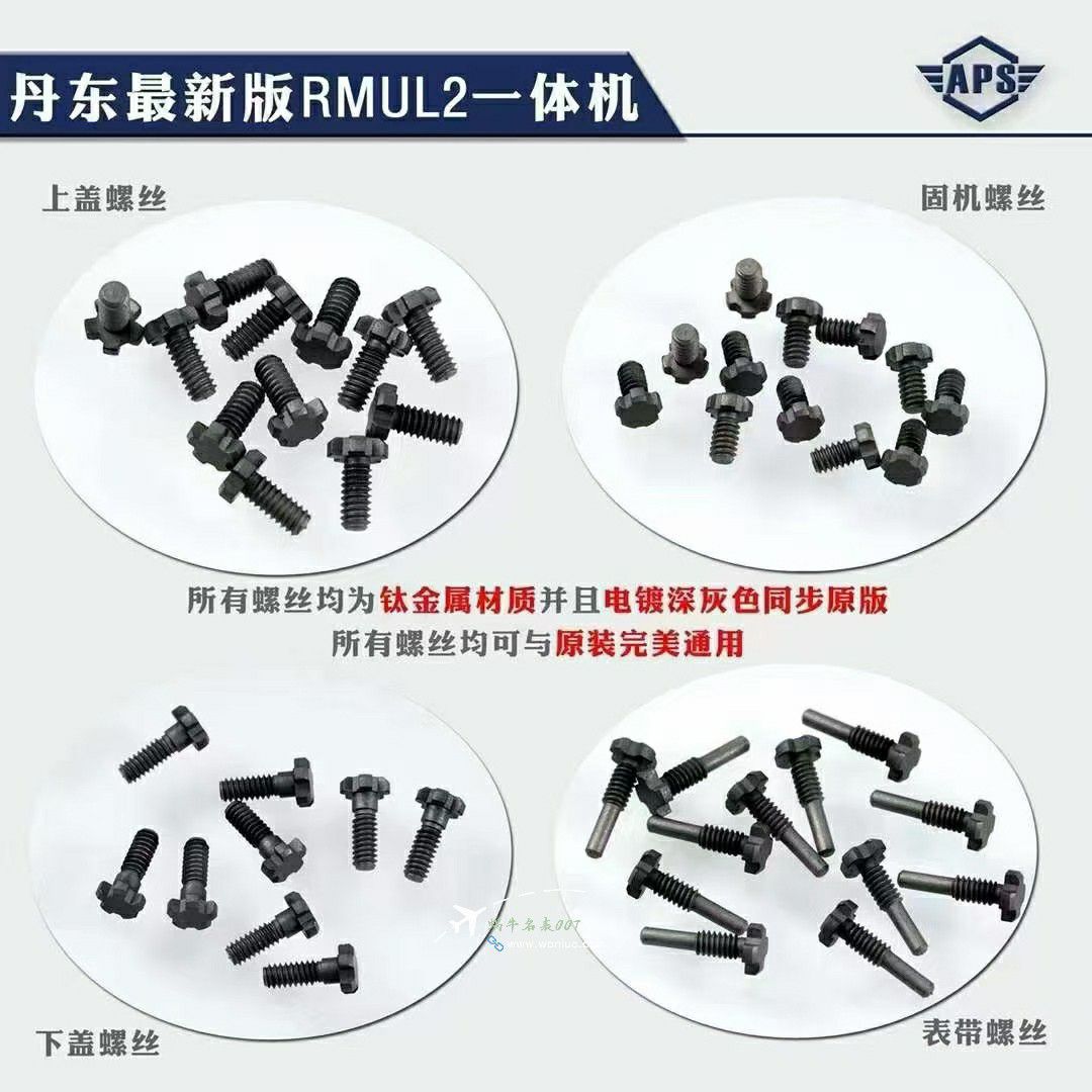 1⃣️机芯:做为丹东开发已久的RMUL2,目前经过长期测试,稳定性相当高,打磨到位,老版本两个固机脚为圆形,我们采用新版与原版一致的心形2⃣️表壳:不惜成本采用进口NTPT表壳(成本高昂),其强度比钢壳更坚固,在阳光下闪闪发亮,具有金属光泽 3⃣️表带:采用天然氟橡胶制作而成,原版开模一体成型,没有任何水口瑕疵,安装表带的头粒同样采用钛金属更加坚固轻便 4⃣️镜面:采用高弧度的蓝宝石镜面,制作成本超高,并采用双面电镀高透膜,清晰而精致,跟原版一样采用分离式装配设计,使其更加精密 5⃣️螺丝:全部螺丝采用钛金属电镀深灰面工艺,无论是固机螺丝还有表带螺丝同样没有偷工减料全部标配钛金属螺丝 APS以最高标准制作产品,欢迎体验!