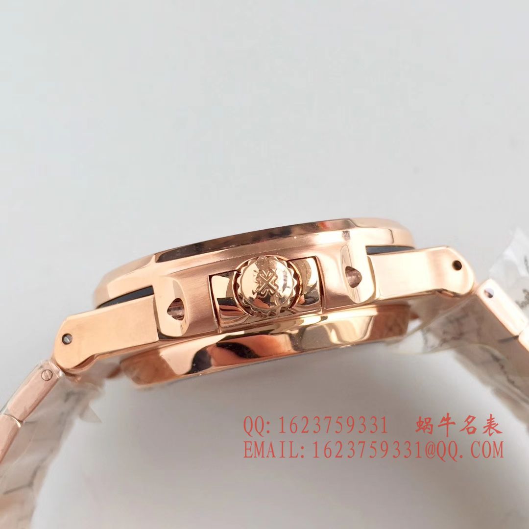 最高品质版本 百达翡丽运动系列(鹦鹉螺)5724升级版机芯。所有功能同正品(10字位动能显示 7字位日历和月相 4字位小秒针),和原装一样的带水平压纹图案,带荧光刻度 ,40mm直径。316L精钢镀金,蓝宝石镜面。5722和5724款的外钻为施华洛世奇钻,通透闪亮,气质非凡。在目前技术范畴内尽可能接近原装,此款腕表让您驾驭所有场合。《皮带款2800、钢带加100、镶钻加100》