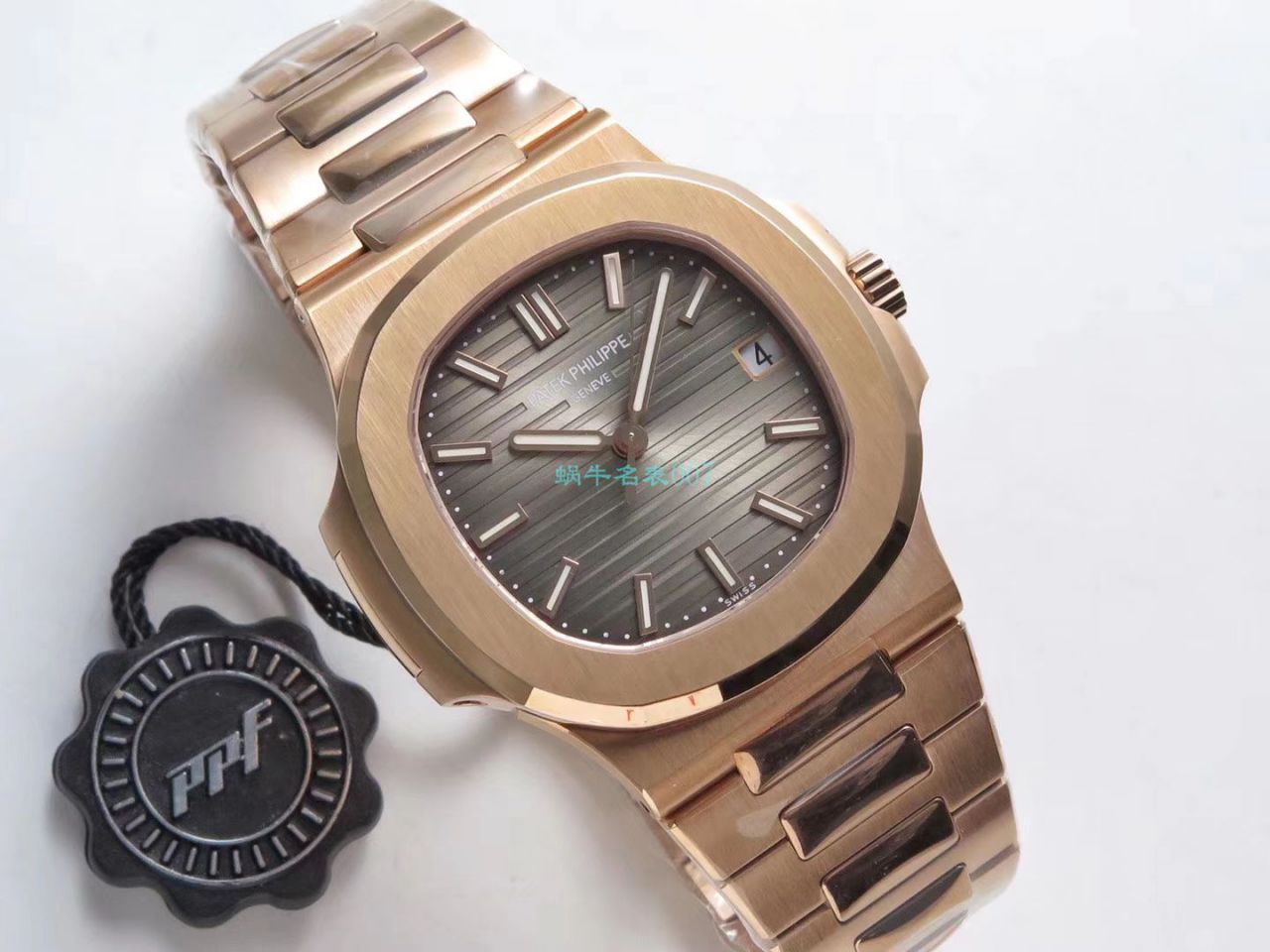 PPF超级鹦鹉螺玫金玫版5711R-001 采用瑞士4N玫瑰金,面泽纯正、不生锈、抗腐蚀性、符合国际及行业标准。全新修正的不锈钢表带,铰链部分根据原装的鹦鹉螺不锈钢表带拆解开发,和正品一致的贴合效果,逆袭之前所有副本,铰链开合角度和正品一致,锁毕声音和正品相同,采用进口全新订制的修正版Cal.324机芯,修正了摆轮方向,剔除底层基础机芯摆轮,厚度最薄版本8.6mm与原装一致,只有做到最好才配戴他去诗和远方,PPFactory.超级鹦鹉螺