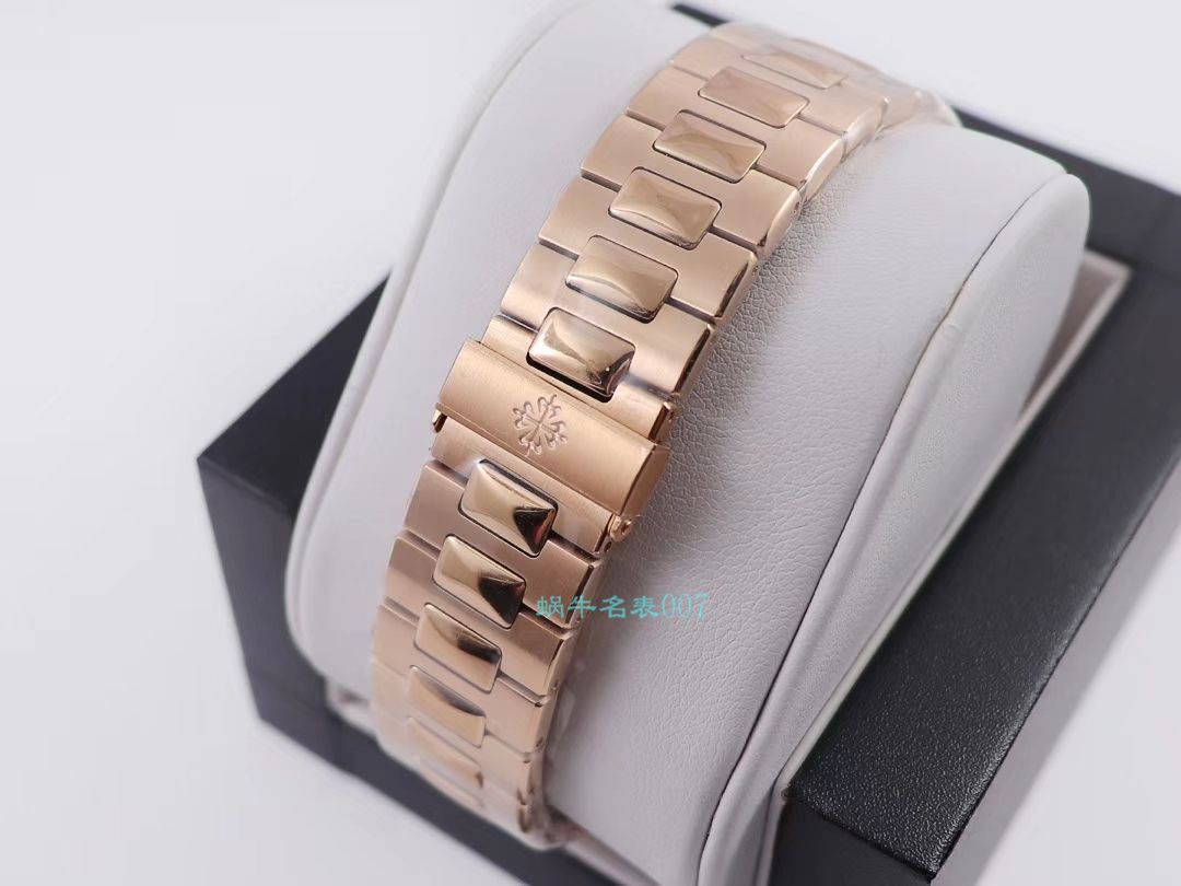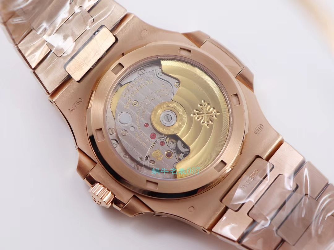 PPF厂超级百达翡丽鹦鹉螺玫金玫版5711R-001 采用瑞士4N玫瑰金,面泽纯正、不生锈、抗腐蚀性、符合国际及行业标准。全新修正的不锈钢表带,铰链部分根据原装的鹦鹉螺不锈钢表带拆解开发,和正品一致的贴合效果,逆袭之前所有副本,铰链开合角度和正品一致,锁毕声音和正品相同,采用进口全新订制的修正版Cal.324机芯,修正了摆轮方向,剔除底层基础机芯摆轮,厚度最薄版本8.6mm与原装一致,只有做到最好才配戴他去诗和远方,PPFactory.百达翡丽超级鹦鹉螺
