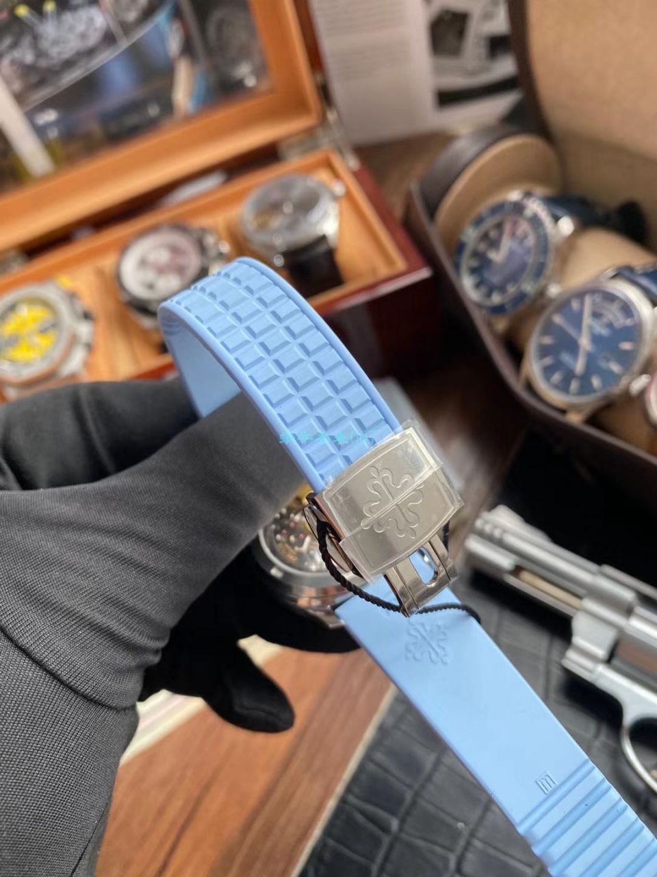 2.完美克隆Aquanaut经典式折叠式表扣,即使在非常细小的拐角处上也做有倒角润饰,确保还原正品般的舒适感。