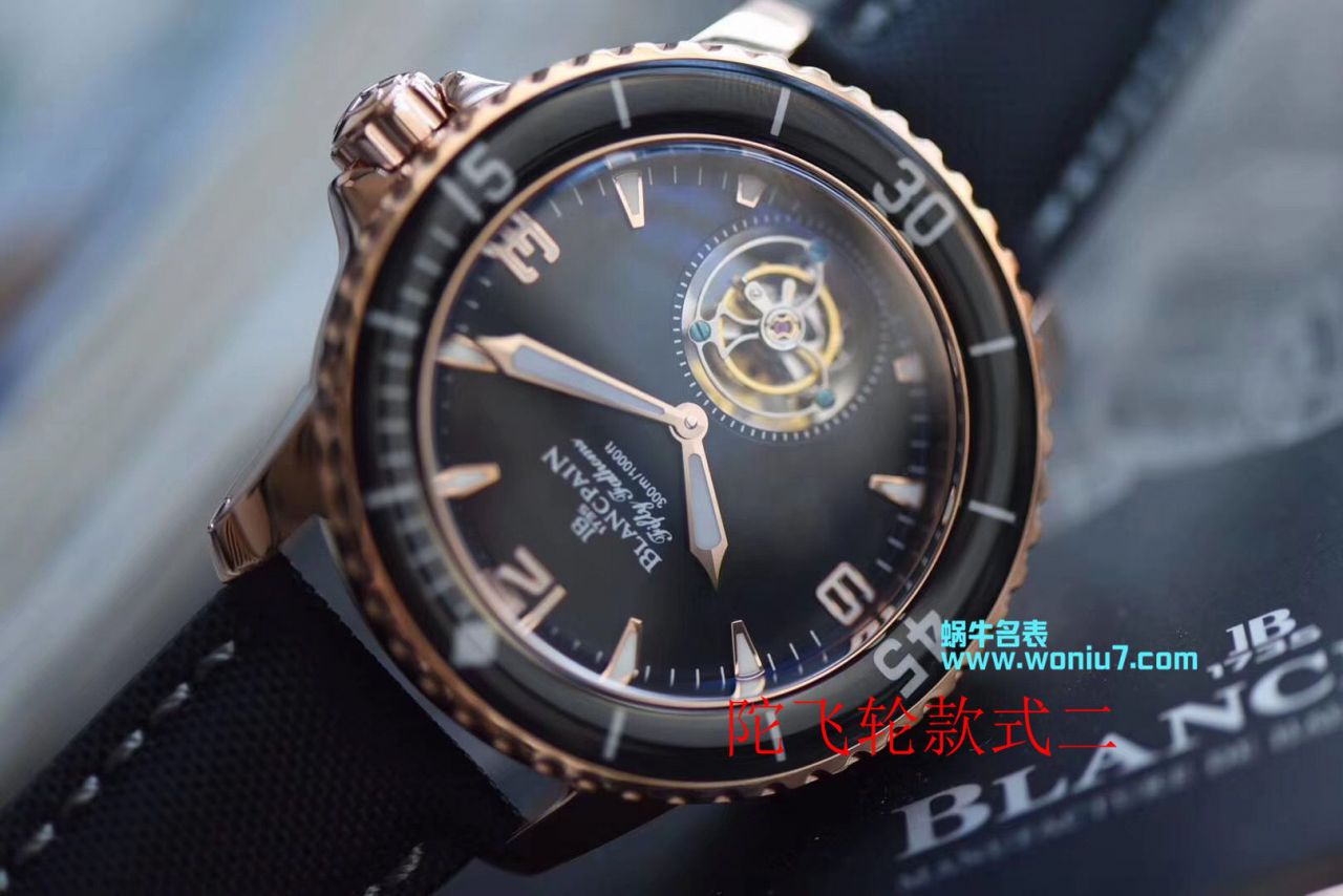 JB厂宝珀五十噚系列终极版5025-1530-52真陀飞轮男士腕表手表,一是机芯机构相似度大幅度提升,还原度达到90%,甲板加了洗花,有和原装一样的钢印,摆锤镀白金,档次明显提高。二是镜面蓝膜光效,三是提升了飞轮亮度,整个表看上去更显档次。和原装功能一模一样:自动上链陀飞轮,6点位置真动能显示!45mm直径,蓝宝石倒计时圈口,双层蓝宝石拱形镜面,整个正面都是完全抗刮的,镀18k白金表壳,加强200米防水底盖,原装旋入式防水把头,可浸泡纤维尼龙表带,配折叠扣表带另送一副针扣表带,目前最防水的真陀飞轮就是它,真材实料,还原原装气质,彰显大牌风范。玩家的新宠!JB厂出品,专为陀飞轮而生。