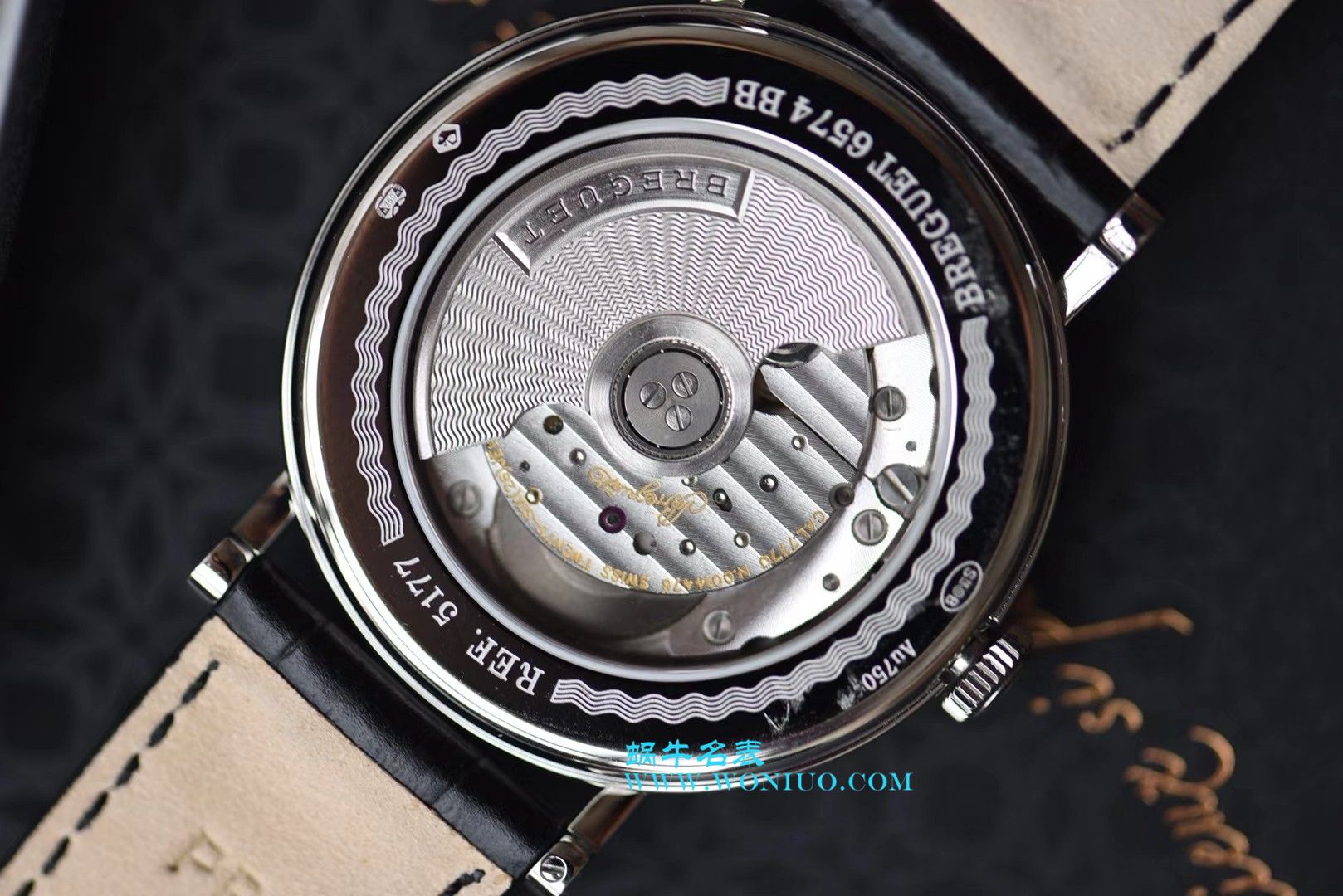 4、表带材料升级为鳄鱼皮质,LOGO印花完美同步。
