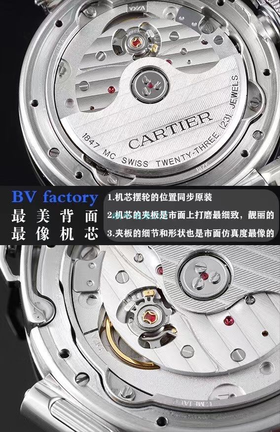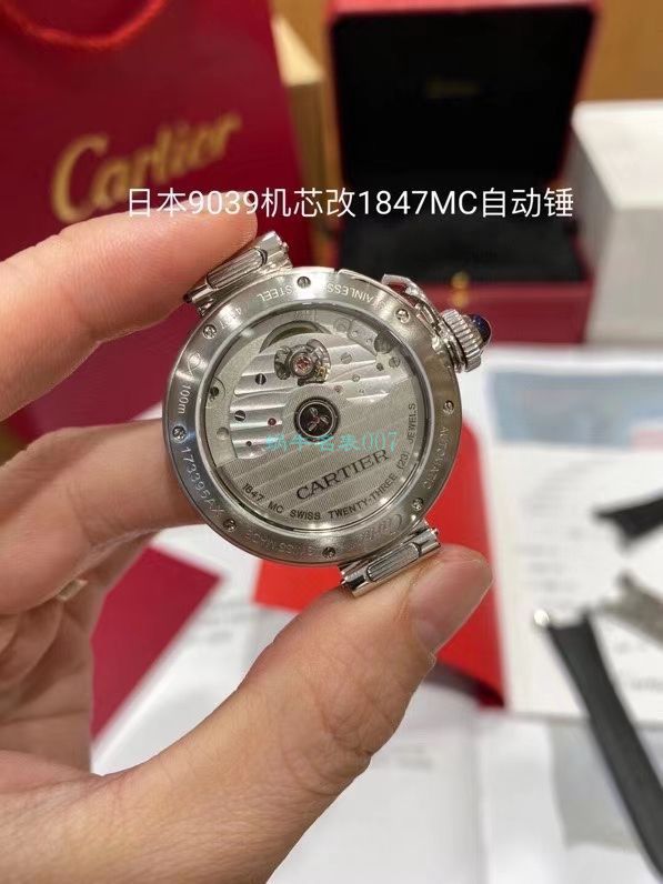 亮点6: 内部机芯进口9039改装卡地亚1847MC结构自动机芯,“芯”如正品。