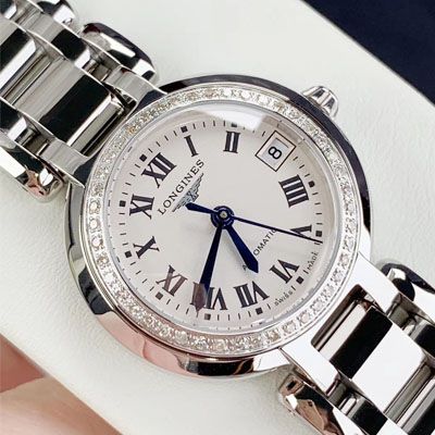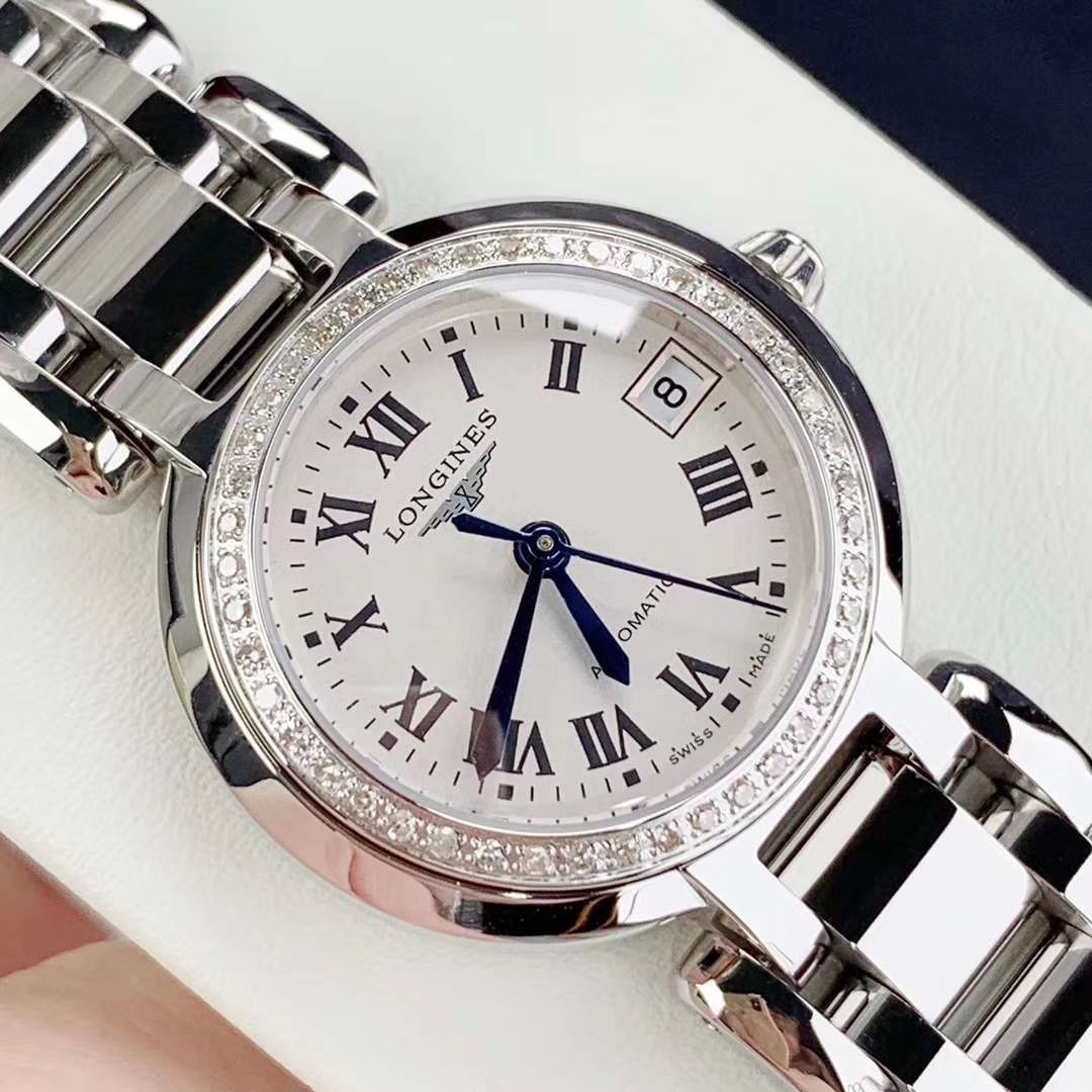 整圈44颗vvs级别真钻镶嵌,浪琴心月 L8.111.0.71.6。专柜价格25900,最牛硬货!经典不败的浪琴系列-休闲时尚女士石英腕表,体现了以飞翼沙漏标志而闻名于世的浪琴品牌最古老的制造美学,圆润皎洁的明月令人心驰神往,26.5毫米的表盘搭配罗马数字,轻易就可识别时间,蓝面淬火指针的设计为这款腕表增面不少,原装瑞士机械L592专用机芯!走时精准,用时耐久,抗磨损蓝宝石镜面,三折式安全表扣和按压式开启装置,原厂大配件立显腕表精髓,一表一码腕表底盖-吊牌-保卡三码一致!
