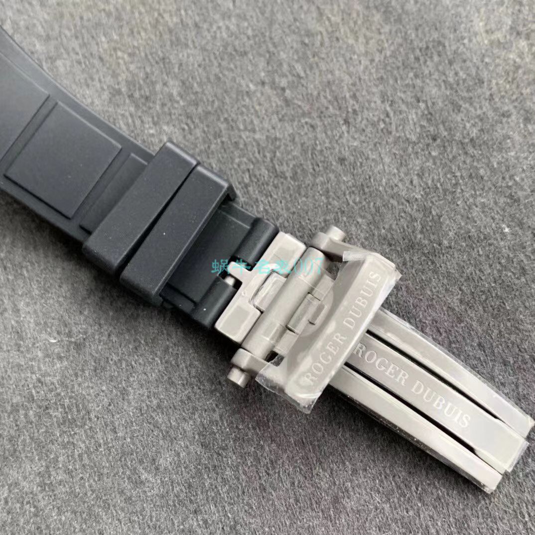 3.表盘:采用了镂空表盘,夜光刻度,黑面DLC涂层钛合金的秒盘印有黑面分钟圈和Roger Dubuis(罗 杰杜彼)字样。指针覆有夜光涂层,读时简单明了。