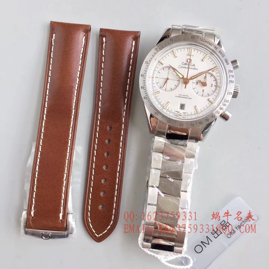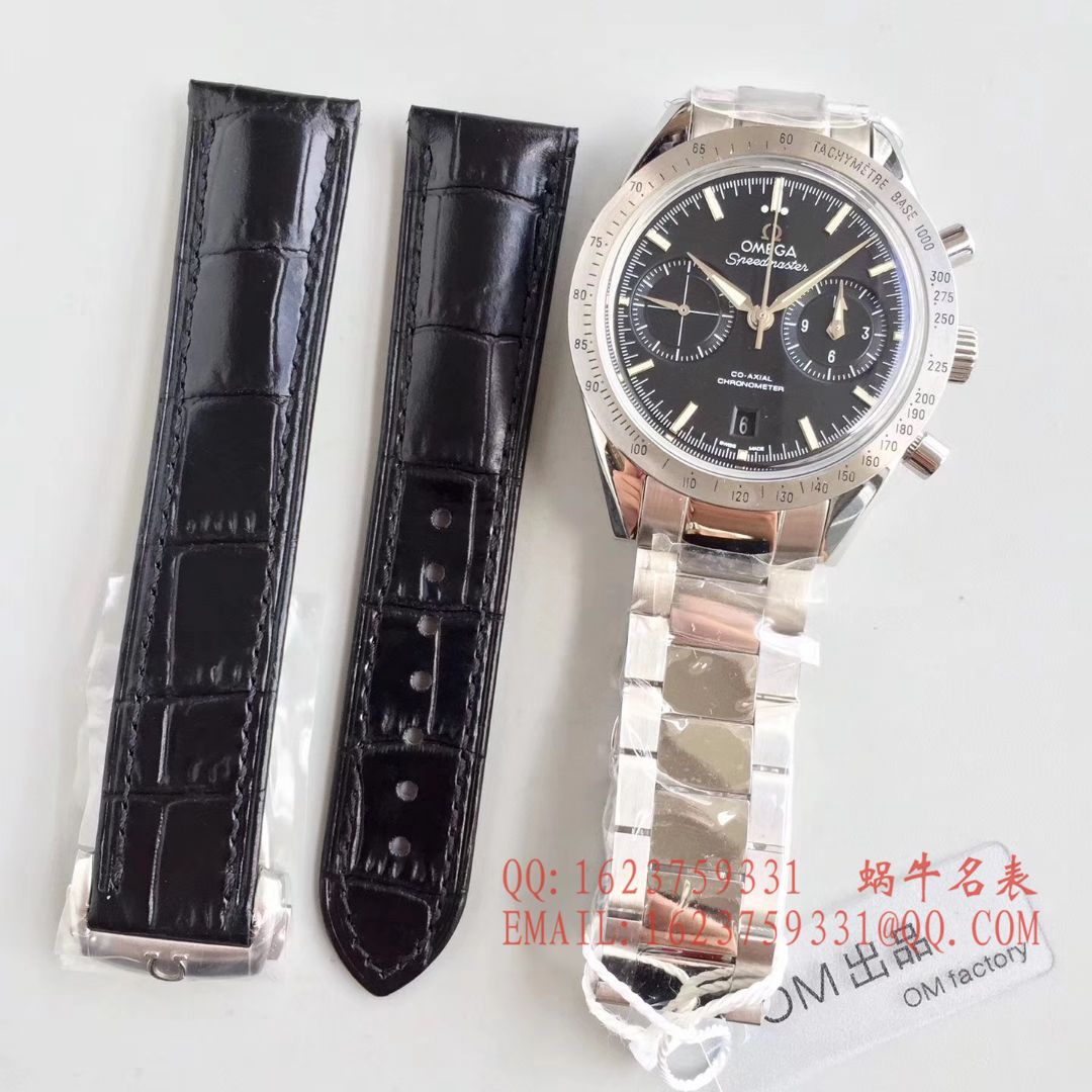 仿表界历史重大突破性新闻发布 om新品传奇超霸系列(57同轴计时表)是市面上最高版本的计时腕表,耗时长达24个月,攻克重重难关研发自制9300机芯,3时位置小盘双针计时 12小时计时盘及60分钟计时盘研发成功,所有功能及外观与原版一致