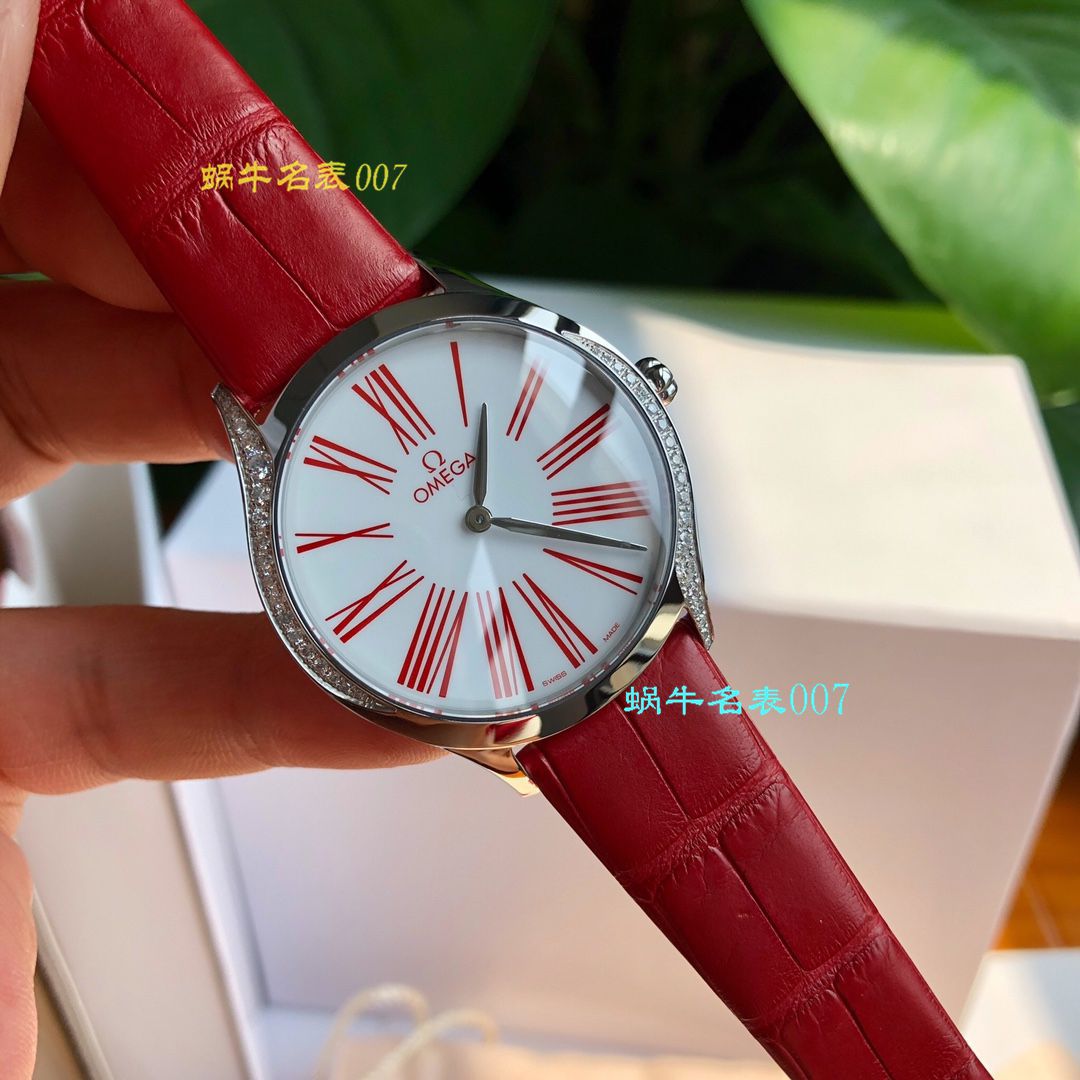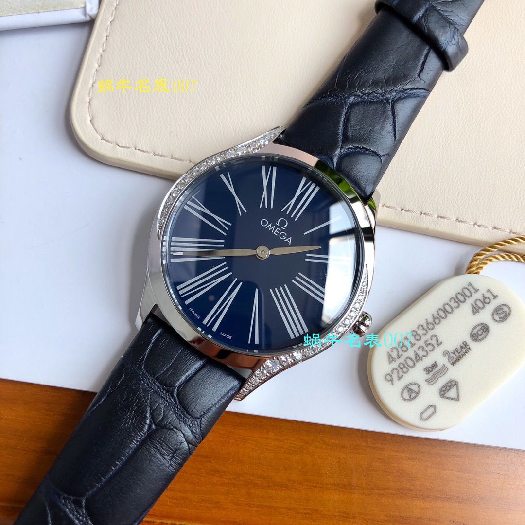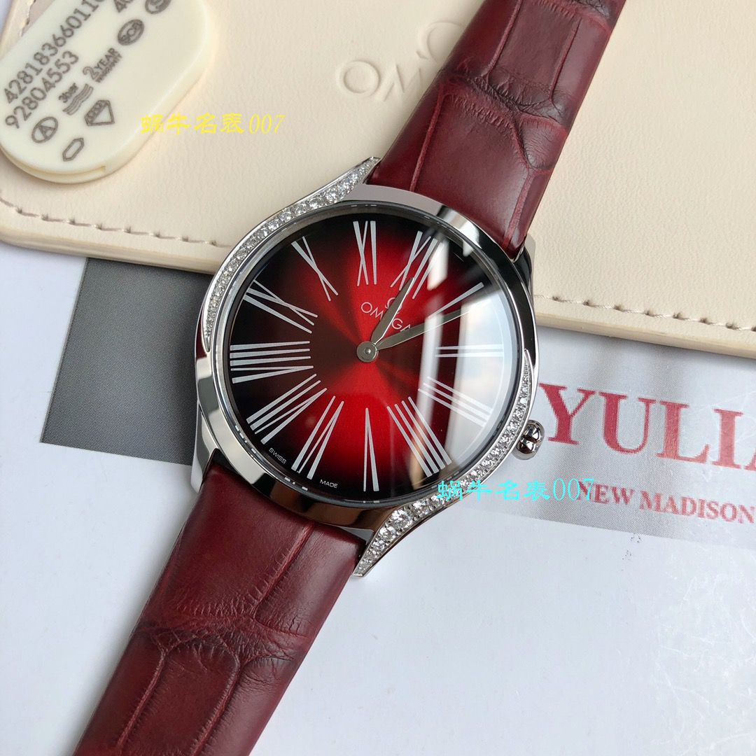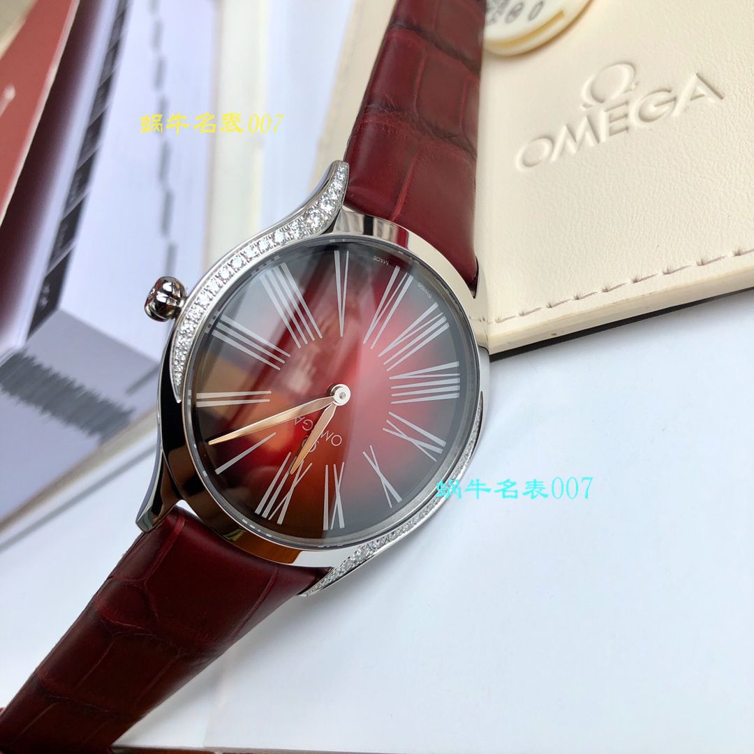 蓝面绢丝表带,新款首发!硬货!渠道出口订单,入行以来最牛的货!欧米茄一直拥有打造精美女士腕表的悠久传统,每一款腕表均呈现纯美的设计风格,演绎前沿时尚理念。今年最新推出欧米茄蝶飞“名典”系列,搭载瑞士石英机芯;纤薄的36毫米表壳,采用瑞士进口316L精钢材质,沿表壳两侧曲线优雅铺镶38颗VVS0.6-2.4钻石(0.493克拉),呈现迷人曲线,奢华无比,尽显高贵典雅女土魅力!圆弧形耐磨损蓝宝石玻璃镜面;亮漆表盘镶贴罗马数字时标和淬火烧钢蓝指针;独特的镜面表背设计,饰有“Her Time”花卉图案,映衬出女生光彩照人的一面;表冠由红面液态陶瓷制成,周围环绕着由5个欧米茄品牌标识相互交叠而成的红面陶瓷花朵图案,花蕊处还镶有一颗璀璨的VVS1.0钻石,精致又独特!绝对超值的一款腕表,拥有名典,成就经典!配原盒包装,自用送礼体面!