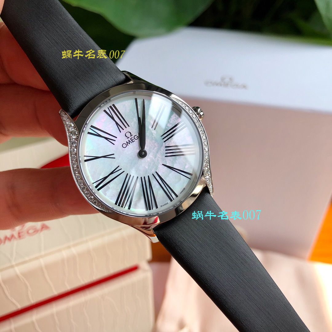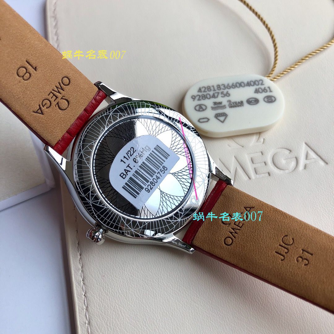 蓝面绢丝表带,新款首发!硬货!渠道出口订单,入行以来最牛的货!欧米茄一直拥有打造精美女士腕表的悠久传统,每一款腕表均呈现纯美的设计风格,演绎前沿时尚理念。今年最新推出欧米茄蝶飞“名典”系列,搭载瑞士石英机芯;纤薄的36毫米表壳,采用瑞士进口316L精钢材质,沿表壳两侧曲线优雅铺镶38颗VVS0.6-2.4钻石(0.493克拉),呈现迷人曲线,奢华无比,尽显高贵典雅女土魅力!圆弧形耐磨损蓝宝石玻璃镜面;亮漆表盘镶贴罗马数字时标和淬火烧钢蓝指针;独特的镜面表背设计,饰有“Her Time”花卉图案,映衬出女生光彩照人的一面;表冠由红面液态陶瓷制成,周围环绕着由5个欧米茄品牌标识相互交叠而成的红面陶瓷花朵图案,花蕊处还镶有一颗璀璨的VVS1.0钻石,精致又独特!绝对超值的一款腕表,拥有名典,成就经典!配原盒包装,自用送礼体面!
