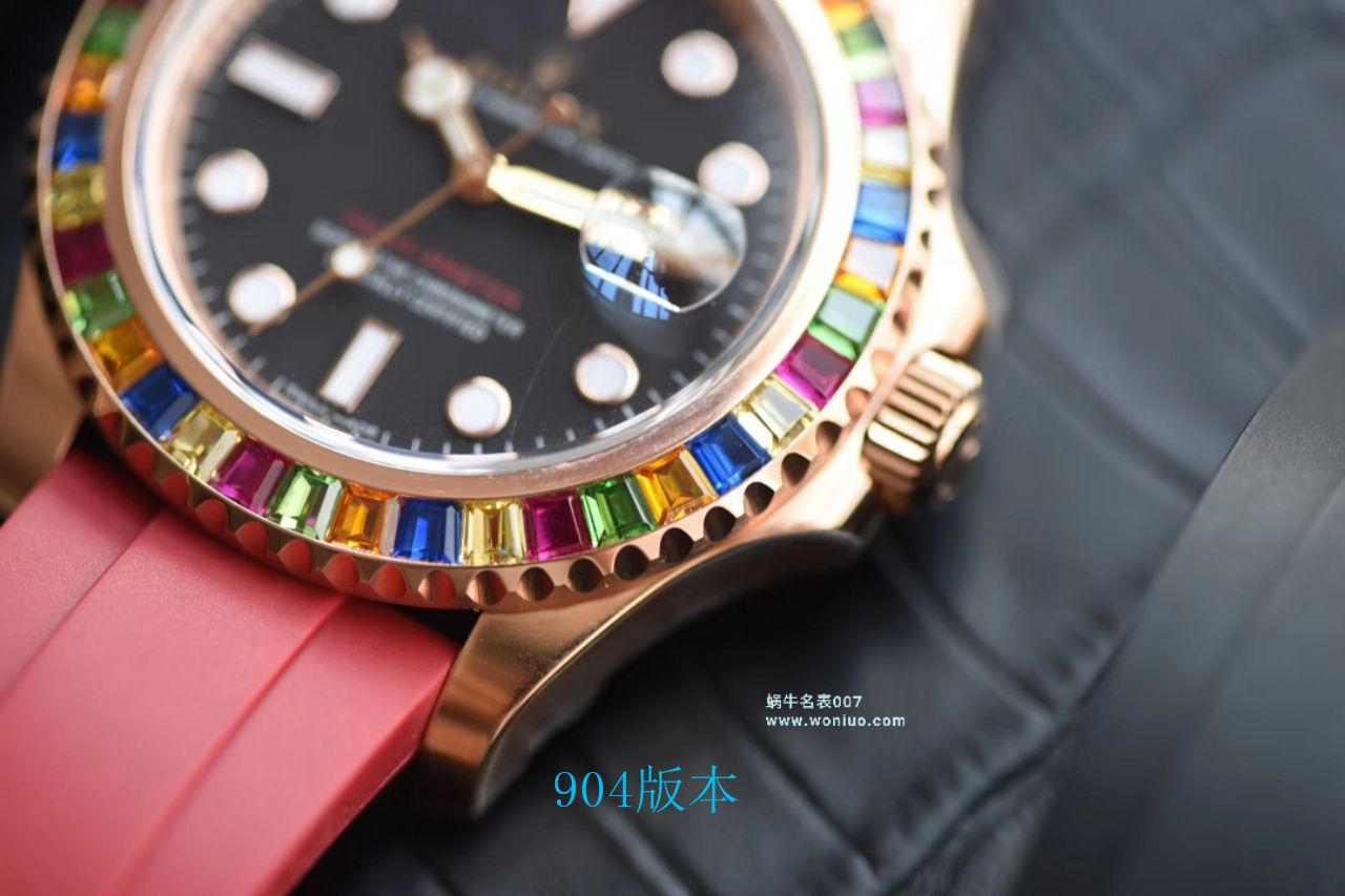N厂欧洲订制版 2836机芯2017年瑞士巴塞尔钟表展新款“糖豆”圈劳力士游艇,116695SATS,史上最精湛的彩钻潜水腕表,和正品一致的定制级Tutti Frutti风格五面彩钻,纯手工独立镶嵌,三角钻石采用明亮式切割最接近正品的切割方式,附赠胶带一副和欧版劳力士定制原厂黑面绒布袋一个,N厂史上第一款欧洲的高端彩钻圈产品。