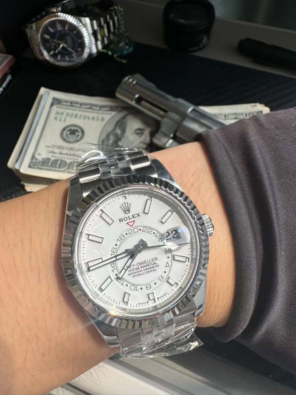 全新系列ROLEX劳力士Sky-Dweller“史上最复杂劳力士”正式面市了!以精湛的工艺技术与表款的正确调校方式重新定义了真正的“天行者”副本。 42MM的蚝式表壳采用904L精钢打磨,经典重现。高通透蓝宝石镜面,小窗凸透镜放大日历。表圈采用劳力士Ring Command三角坑纹双向旋转表圈,旋转外圈可调节月份功能。表扣是摺叠蚝式带扣配5MM易调链节延展系统。而ZF 独家正品开模字面的“魅蓝面”放射纹表盘,阳光下阴天里变化灵动,与正品拥有一样的神韵。 独家9002机芯,28800每小时振荡次数。而与正品一致正确的调校方式是在第二时区上,Sky-Dweller是通过子表盘显示。它由两个元素组成:位于LOGO下方的红面三角形,它指向第二时区的时间,以24 小时制显示。旋转把头拉出来到第一档,往上则为调日历档,往下则单调时针(分针保持不动)。拉至第二档可正常调时间(子表盘的24 小时制表圈即跟随移动) 解毒利器