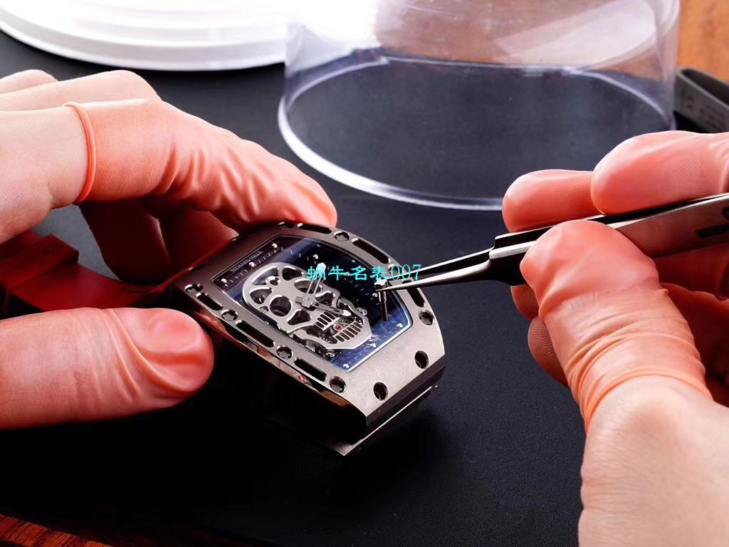 2,深度研究原厂RM052的表壳材质,采用航空钛金属重量比普通钛壳表轻30%。表壳锁毕结构高度还原正品水准,
