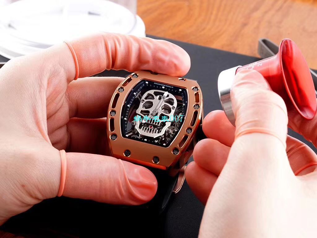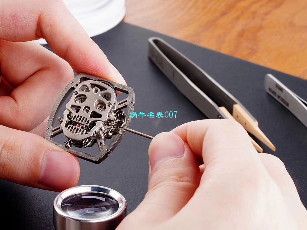 2,深度研究原厂RM052的表壳材质,采用航空钛金属重量比普通钛壳表轻30%。表壳锁毕结构高度还原正品水准,