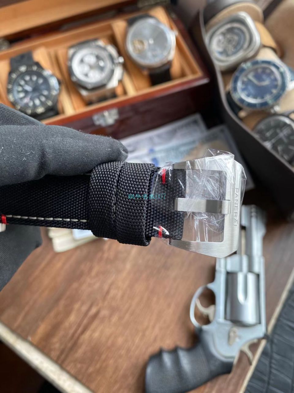 VS新品:沛呐海Luminor Marina 44MM PAM 1025 独特放射纹面 罗马底盖,带头手工缝制红线点缀 。比经典PAM312更显神秘的面彩。