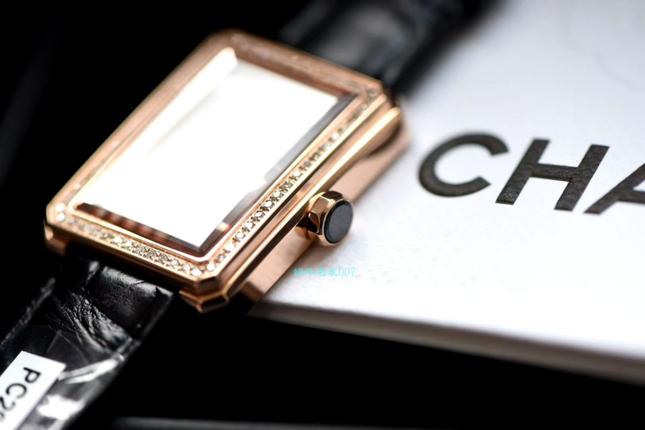 每个女生心中都有个boy.friend时刻陪伴,温柔宠溺 带给你无与伦比的自信魅力、完美掌控读心术的香奈儿BOY.FRIEND腕表作为一款颠覆女性设计品牌手表 理所当然的从名表品牌中脱颖而出。这次真的太难得了 好在也是几个月前就定下的机芯 一次也就几百个!机芯大幅涨价进出口难度增加!也不是随便可以买得到.所以对于这批表来说也是限量的… 原装eta280.002石英机芯,62颗明亮式切割天然南非足反钻石 30米生活防水!蓝宝石水晶玻璃镜面,表盘用扭索雕纹搭配黑面鳄鱼皮、表盘尺寸21.5*28mm 典雅的质感扑面而来,它采用了精钢材质表壳,表盘没有刻度和数字,只有银面香奈儿英文标识、时针和分针。犹如浑然天成的一枚手镯,是你化妆间里必不可少的一款单品,配原盒!送礼自用都体面!