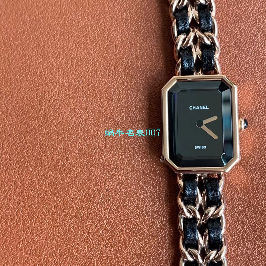 BV出品 Premiere系列是香奈儿与1987年推出的第一款专为女性设计的腕表,其灵感来源于N5香水的瓶盖与巴黎芳登广场的广角形轮廓。这款推荐腕表采用精钢表壳,搭载高度精确的石英机芯 直径20x26.1毫米 表盘漆黑,表冠饰以凸圆形切割黑玛瑙,精钢与黑面皮革交织而成的链带显示出独特的设计感与美感。 表带有大小号供选择 手腕尺寸15cm以上建议佩戴大号 15cm以下建议佩戴小号 配送专柜包装