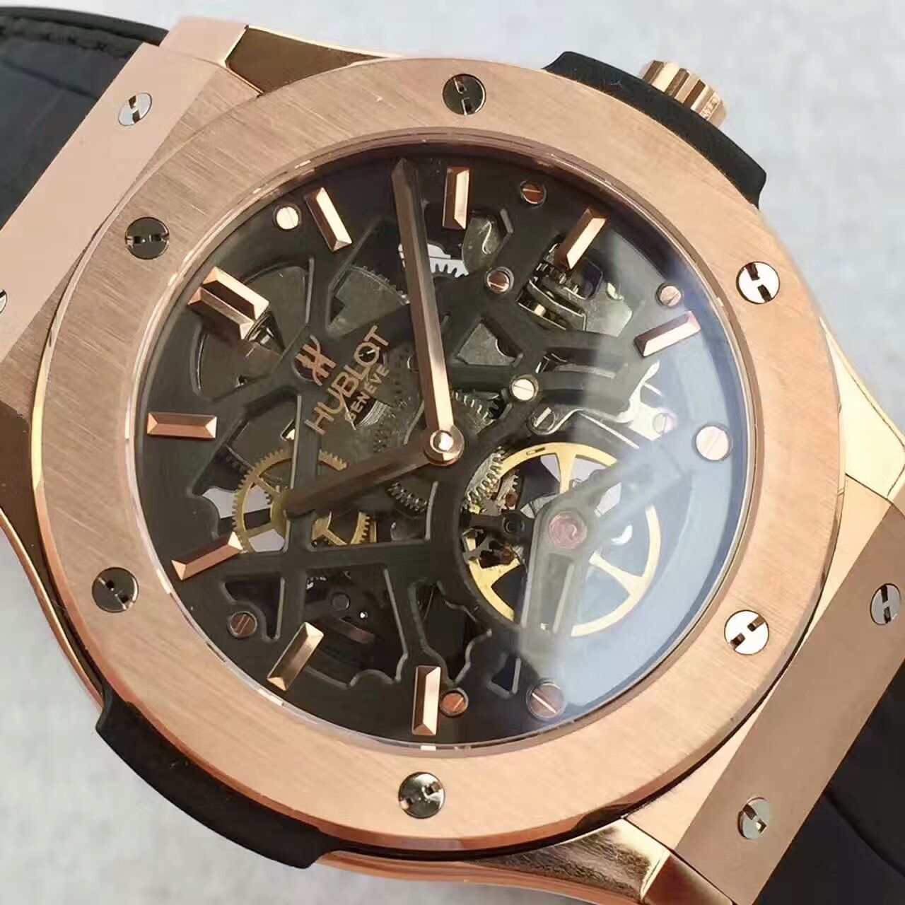 HUBLOT 宇舶 恒宝 经典融合系列系列 自动腕表 505.TX.0170.LR 手表 男表 精钢表壳 镂空表盘 镀铑刻度及表针 HUB6010自动镂空机芯 橡胶真皮表带 折叠扣 表圈42mm连壳边45mm TF厂出品