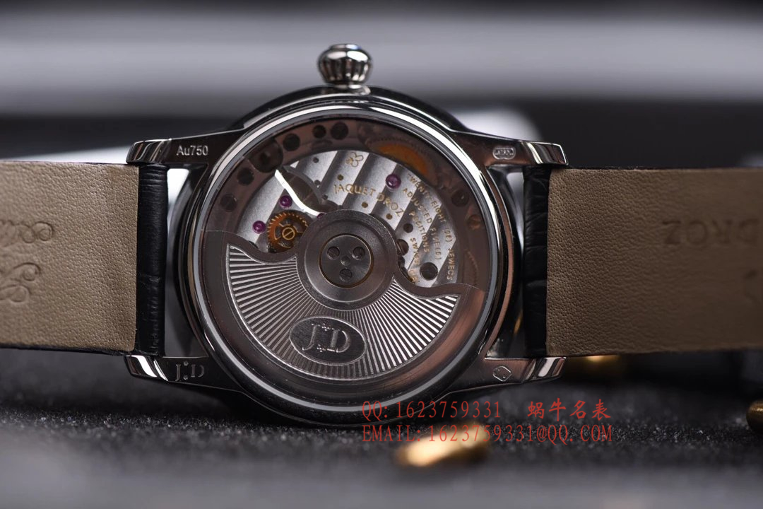 全自动机芯原装雅克德罗机,进口小牛皮,直径33mm。一款极其特别的精品机械女表。