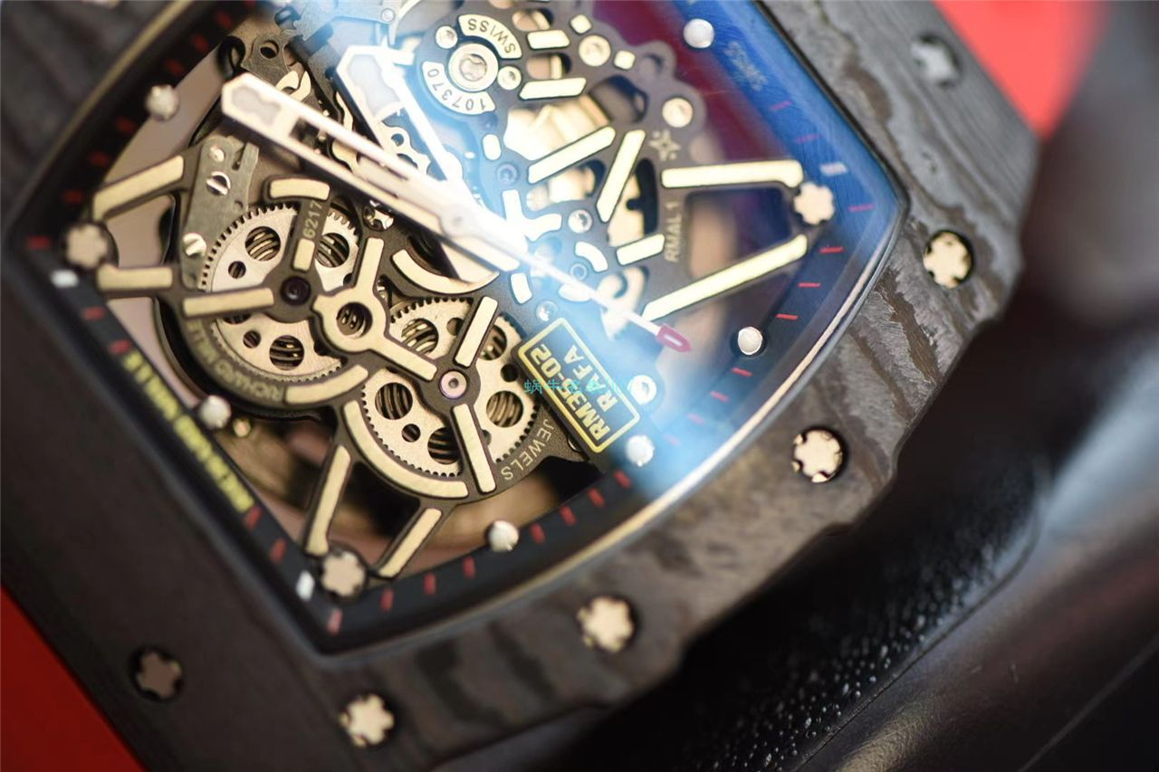 2.采用RM原厂NTPT碳纤维打造全碳表壳,NTPT碳花的云纹、波浪,均经过ABD制壳师的手工打磨修饰,上手状态无敌;