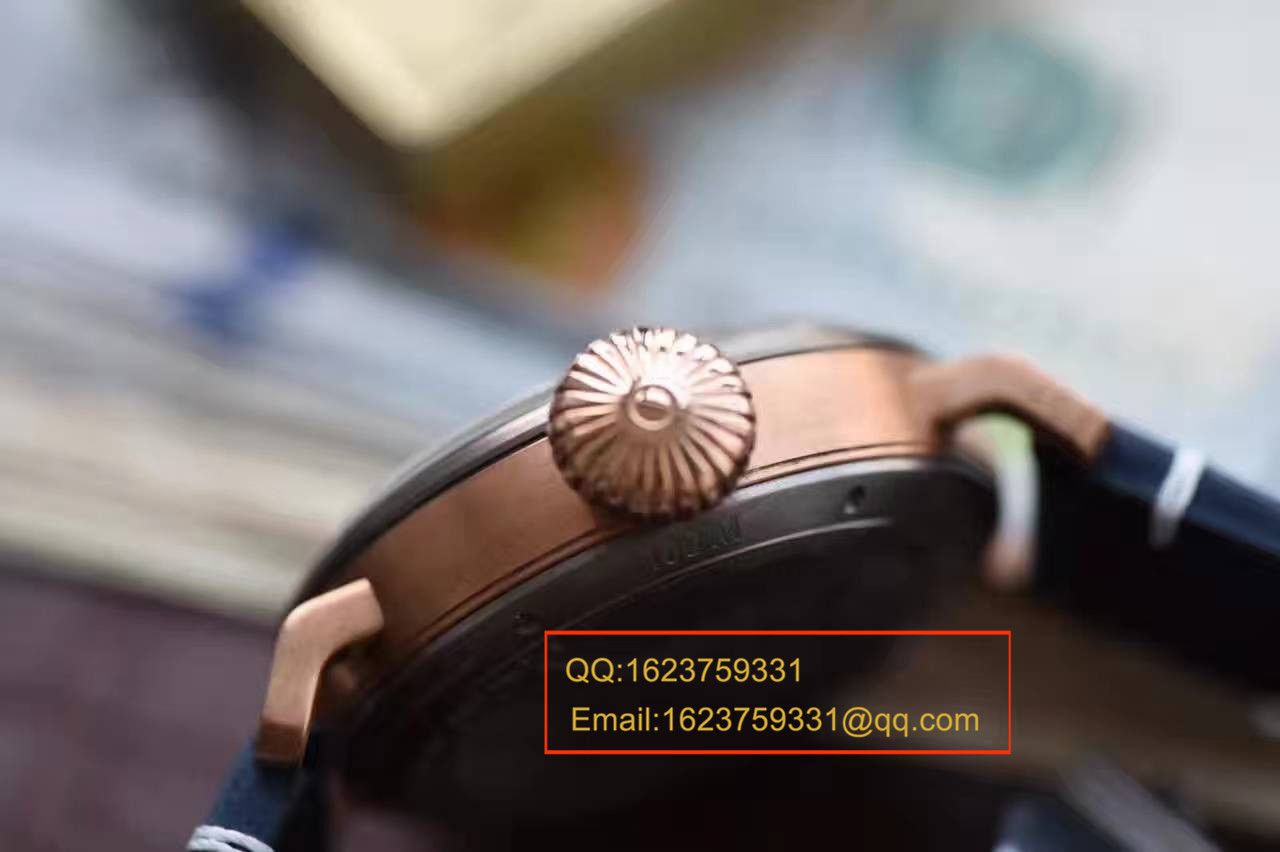 以青铜和钛金属表壳搭配深蓝面表盘、蓝面小牛皮表带(白面缝线)青铜洋葱头。