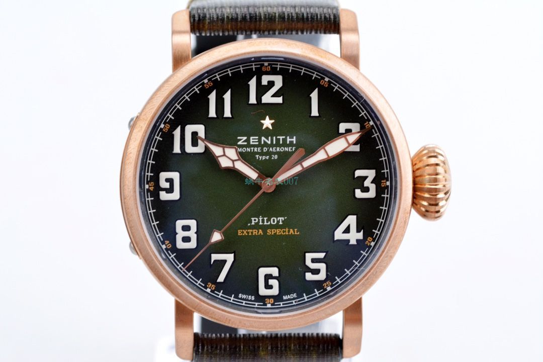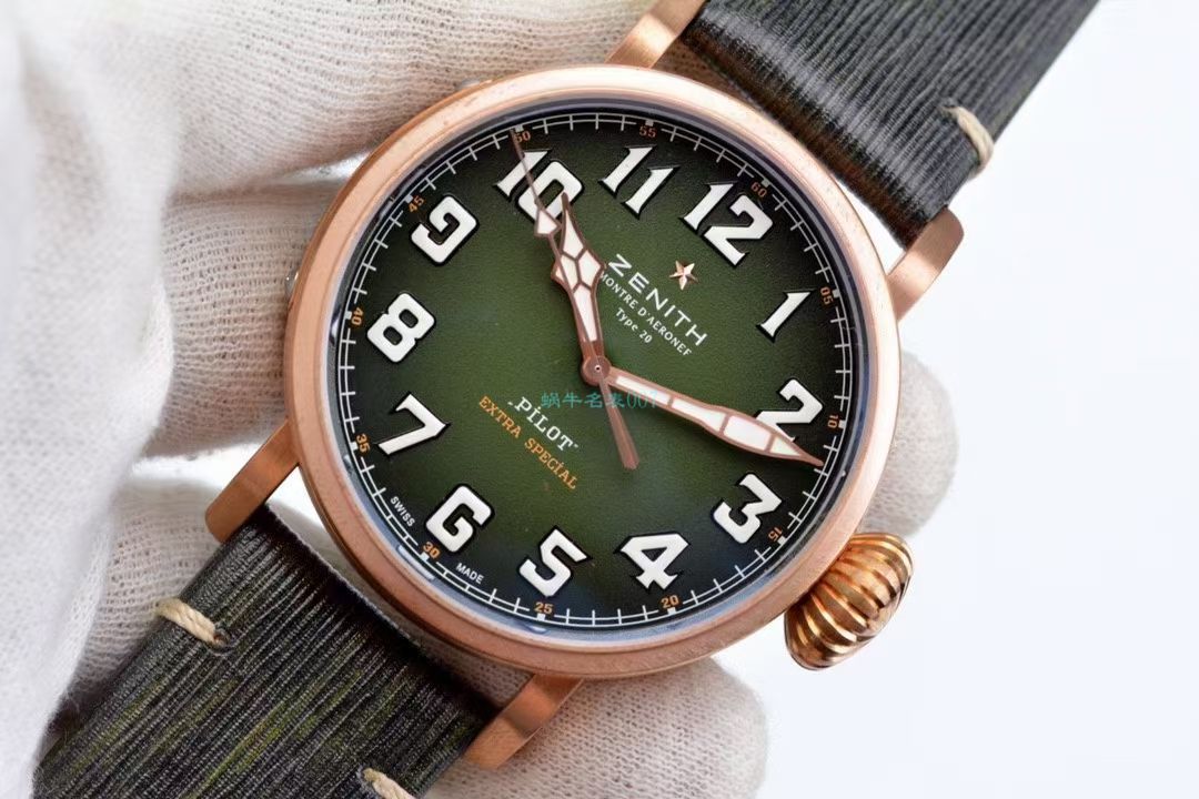 XF 真力时新品爆款: 卡其绿“青铜大飞” 1,全新壳套,升级进口材料,不,并且用特殊工艺处理不会再出现脏斑比复古感十足。 2,全新贴近军事风格的粒面“卡其绿”表盘。 3,具有真力时标志性设计的“洋葱大把头” 青铜材质,岁月变迁,赋予你独特的个性。